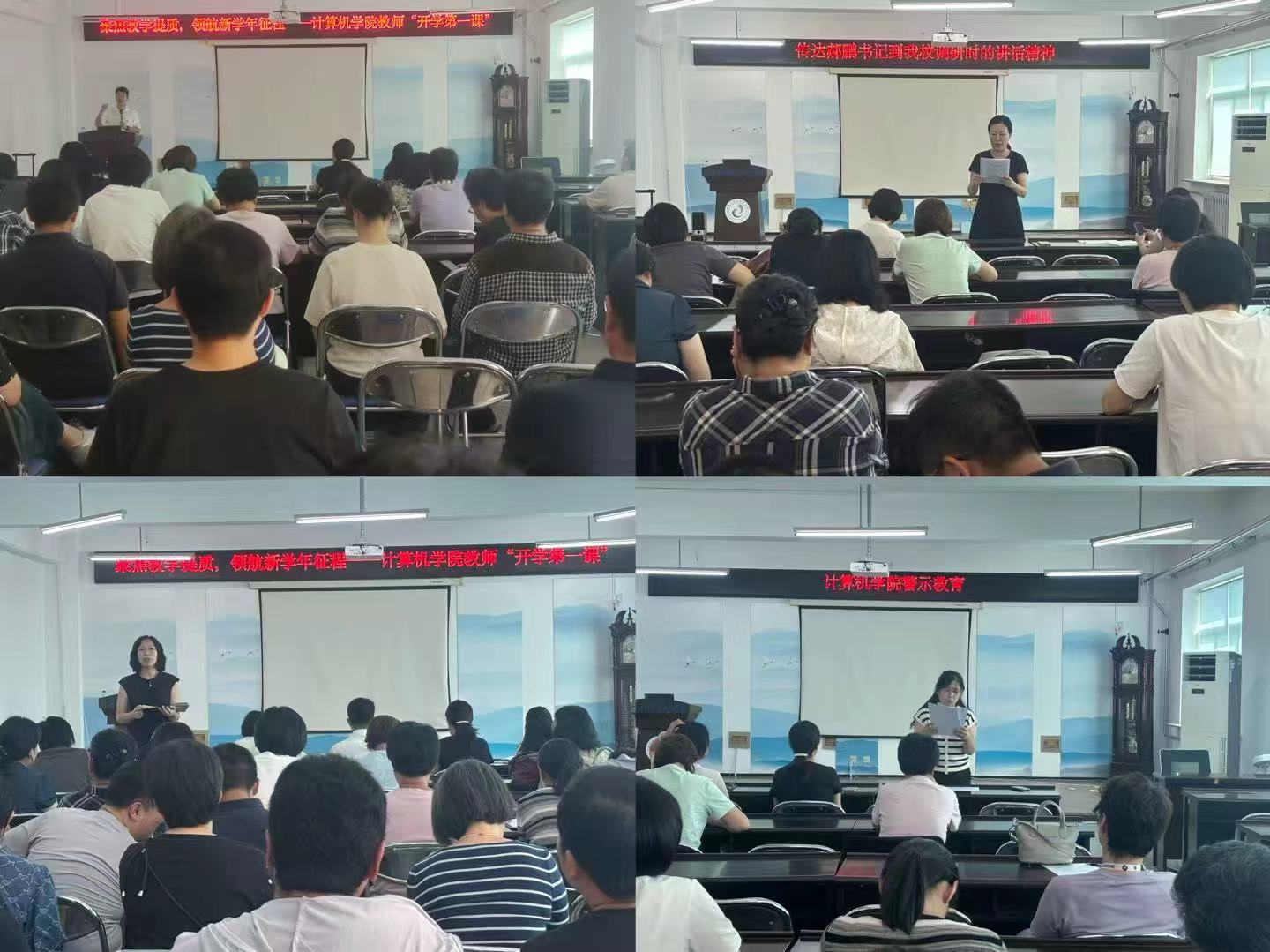 首先,王菲书记传达学习了郝鹏书记到我校调研时的重要讲话精神。她强调,全院教师要深刻领会讲话精神的核心要义,始终坚守为党育人、为国育才的初心使命,以强烈的责任感与使命感投身教育教学和科研工作,主动担当作为,为培养高素质计算机领域人才贡献力量。