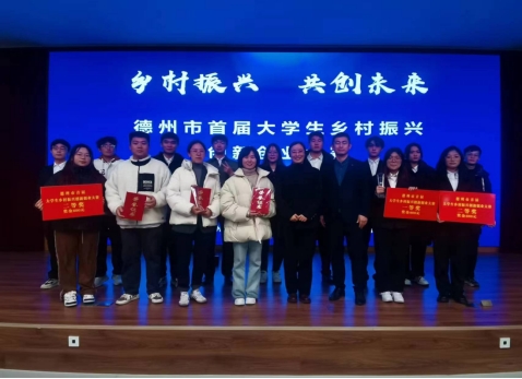 12月14日德州市首届大学生乡村振兴创新创业大赛成功举办。经过学生们精彩表现和评委们客观公正评价,比赛共获得一等奖1项、二等奖3项、三等奖4项、优秀奖4项,优秀指导教师3名、优秀组织奖1项。