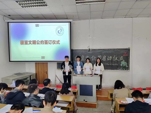 活动最后寝室长代表寝室同学签署寝室文明公约。寝室长们纷纷表示,通过此次活动,更加充分认识到寝室文化建设的重要意义,一定积极参加寝室文化节活动,充分发挥想象力和创造力,将寝室打造成为一个充满个性的温馨空间,促进同学们养成良好的学习、生活习惯,进一步增强同学们的集体凝聚力与归属感,为营造平安、高雅、和谐、温馨的宿舍文化建设做出应有的贡献。