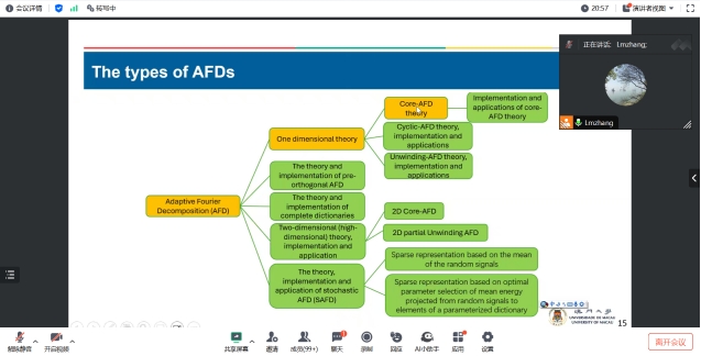 为促进学院内涵发展,提升办学质量,10月17日下午6:30,Beat365中文官方网站特邀请澳门大学科技学院计算机与信息科学系张立明教授,为学院师生作了题为《自适应傅立叶分解(SAFD)及其在图像处理中的应用》的线上学术报告。本次会议由Beat365中文官方网站王军教授主持,与会成员包括学院教师和研究生等。