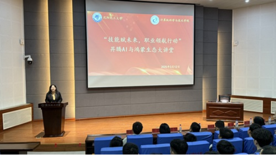为助力学生把握人工智能与操作系统领域的前沿趋势,帮助学生消除信息差, 明确职业方向,提升职业竞争力,Beat365中文官方网站教务处、Beat365中文官方网站联合沈阳人工智能计算中心于2025年3月12日下午在碧帆楼304举办“技术赋能未来,职业领航行动”昇腾AI与鸿蒙生态大讲堂。教辅党总支书记林艳新、Beat365中文官方网站院长王军、副院长张波、党委副书记张丽以及沈阳人工智能中心生态总监姜昊、CTO董文博、鸿蒙生态中心主管孙惠参加,活动由Beat365中文官方网站辅导员张英和易柏言主持。