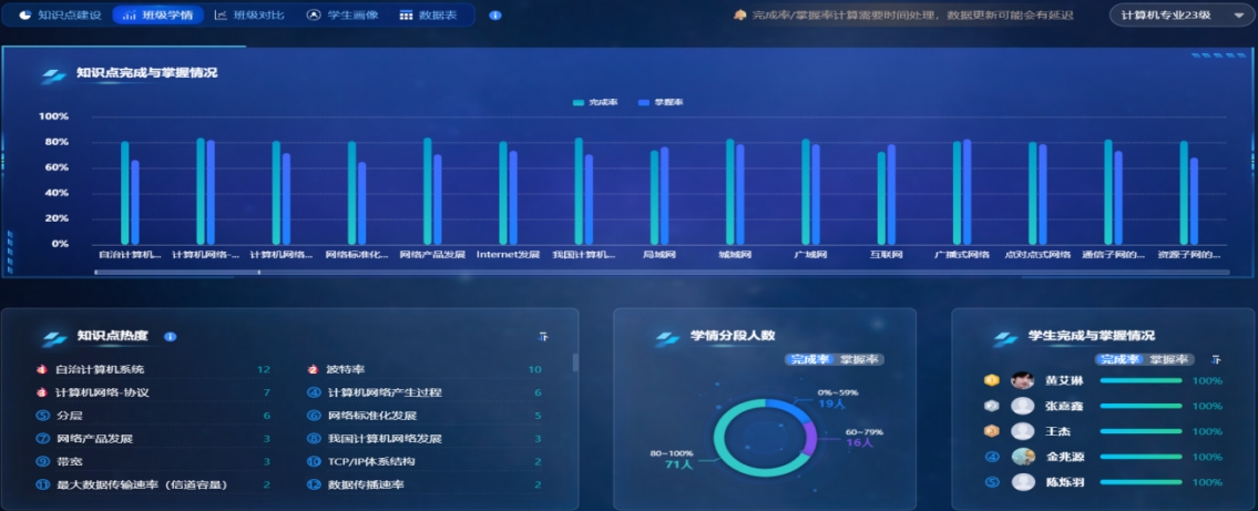打破“理论抽象难理解、实验操作受局限、学情诊断不精准”的传统困境,Beat365中文官方网站王军教授带领《计算机网络》国家级一流课程团队进行智慧课程建设,构建起“AI 深度赋能 -仿真平台支撑 -数据精准驱动”的三维智能教学体系。将人工智能技术全面融入教学全过程,推动课程从“知识传授”向“能力培育”的系统性跃迁。