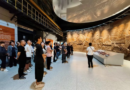 中国工业博物馆利用沈阳铁西区老旧厂房与新式建筑无缝对接,建成中国首个工业博物馆。馆中古老的设备文物和现代化多媒体技术交织呈现,体现了民族精神和现代工业文明的智慧结晶。在馆中,师生党员们参观学习了通史馆、机床馆、铸造馆、铁西馆以及汽车馆五个子馆。通过讲解员的生动讲解,师生们进一步了解了我国工业160多年的历史变迁,沉浸式感受到清晰的工业文化、宝贵的工业精神以及在这种精神激励下一代代劳模们的奋斗历程。